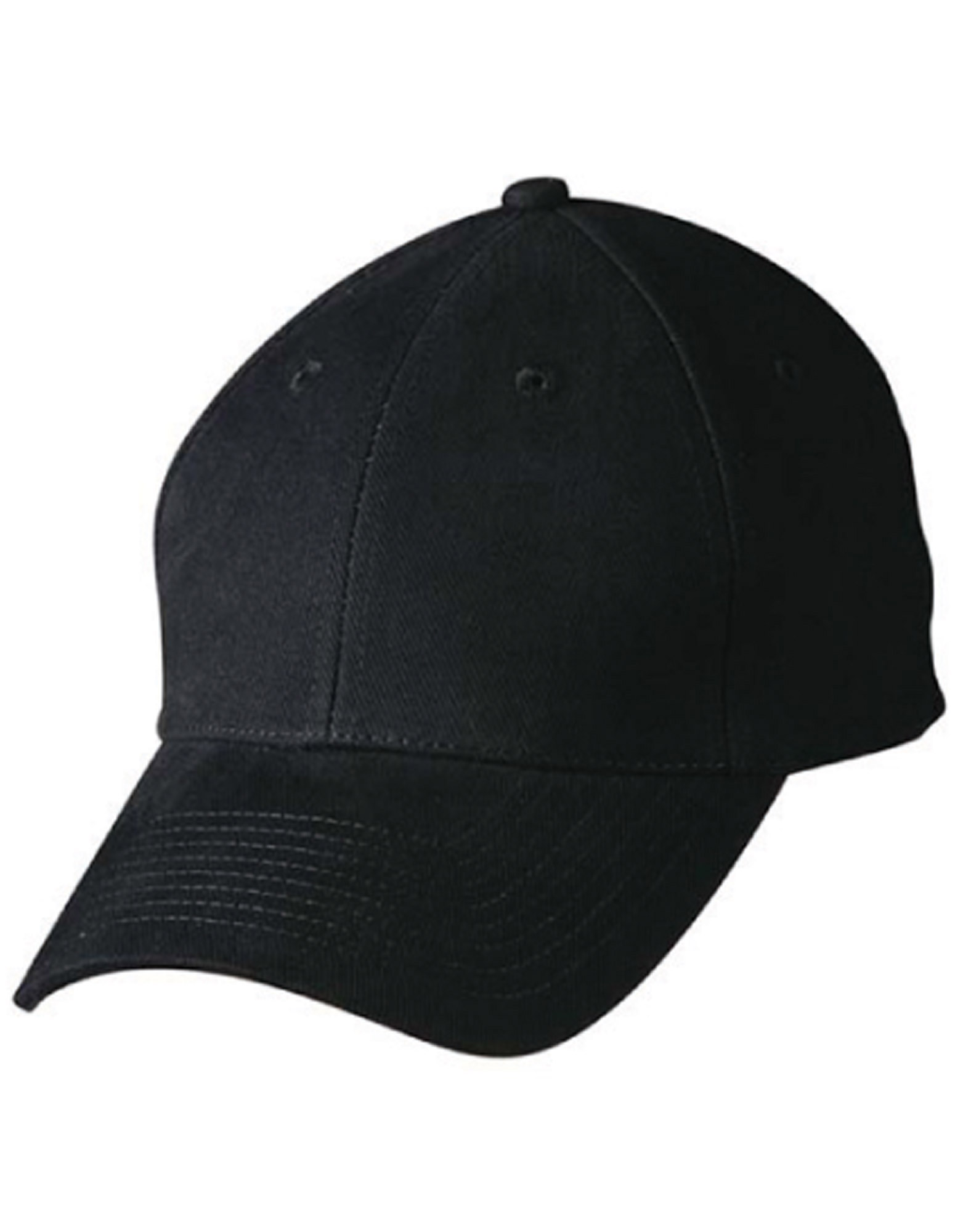 Description: 6 panel structured laid back front. Pre-curved peak. Fabric strap with gun metal buckle & tuck in return.