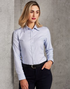 [M8922] Ladies' Dot Contrast Long Sleeve Shirt M8922