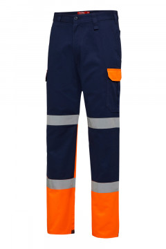 Two tone pant with Hi-Visibility fluoro panels on front back lower leg, pocket flaps and pen pocket