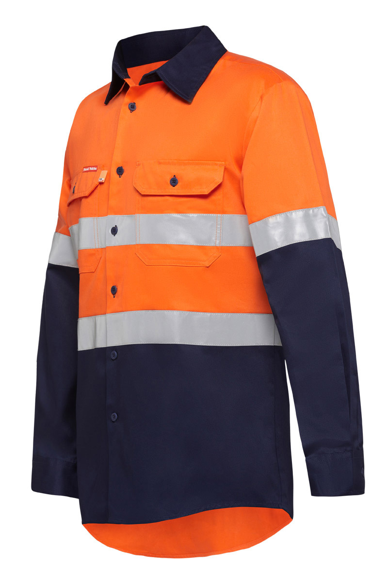 Hard Yakka Foundations Hi-Visibility Two Tone Cotton Drill Shirt With Tape Long Sleeve Y07990