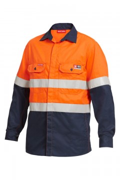 Hard Yakka Shieldtec Fire Retardant Hi-Vis Two Tone Open Front Shirt With Tape Long Sleeve Y04350