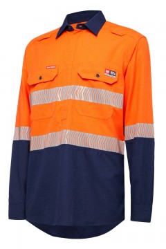 Hard Yakka Shieldtec Lenzing Fire Retardant Hi-Visibility Two Tone Long Sleeve Closed Front Shirt Wi... Y04375
