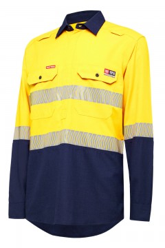 Hard Yakka Shieldtec Lenzing Fire Retardant Hi-Visibility Two Tone Long Sleeve Closed Front Shirt Wi... Y04375