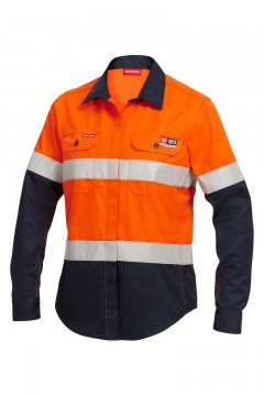 Hard Yakka Shieldtec Fire Retardant Womens Hi-Vis Two Tone Open Front Shirt With Tape Long Sleeve Y04050