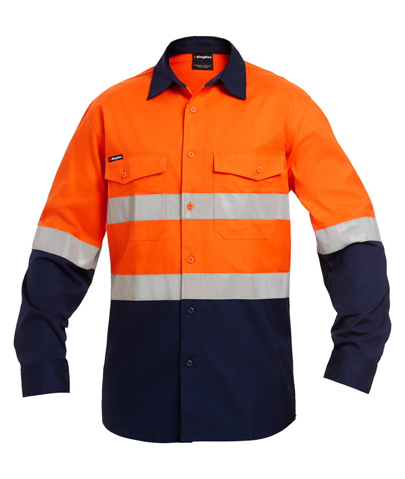 KingGee Workcool 2 Hi-Vis Reflective Spliced Shirt Long Sleeve "Hoop" Pattern K54880