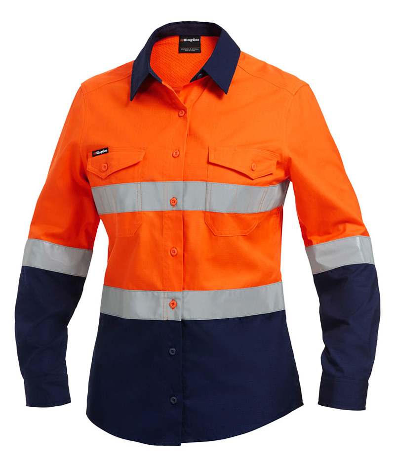 KingGee Workcool 2 Womens Reflective Spliced Shirt Long Sleeve 'Hoop' Pattern K44544