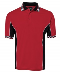 Motor sport inspired check jacquard collar and cuffs, contrast side panelling & piping complete this classic fit polo