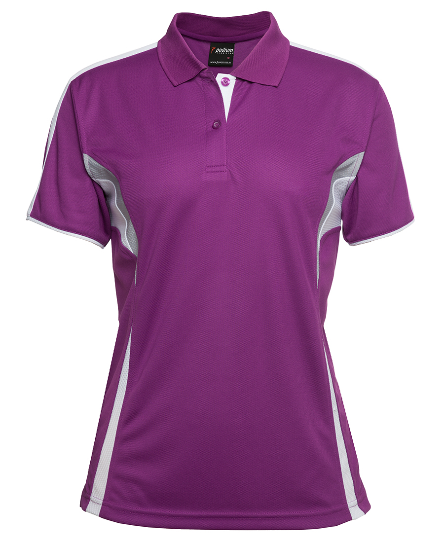 An athletic polo featuring contrast cut and sewn mesh panels to enhance breathability in high sweat areas.