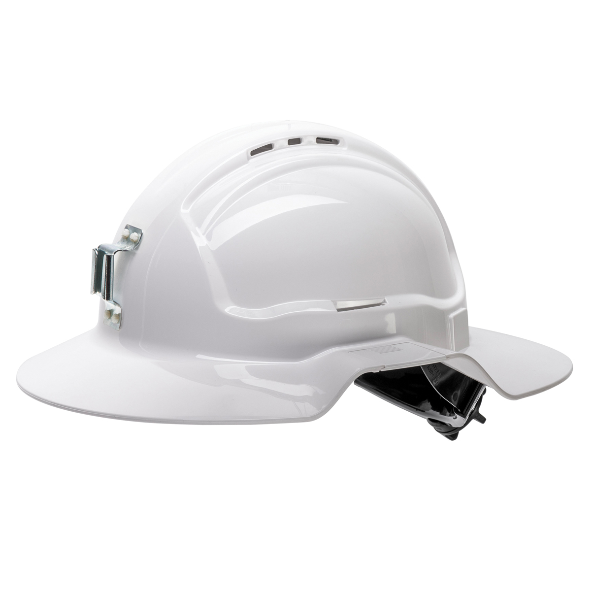 Force360 Broad Brim Miners Hard Hat, Vented, 6 Point Ratchet Harness, Type 1 HPFPRBB57RML.WH