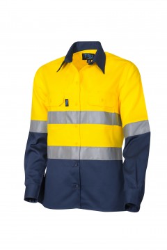 Ladies Regular Weight Hi-Vis Cotton Vented Shirt with 3M Tape DSW2112T1-Y/N-08
