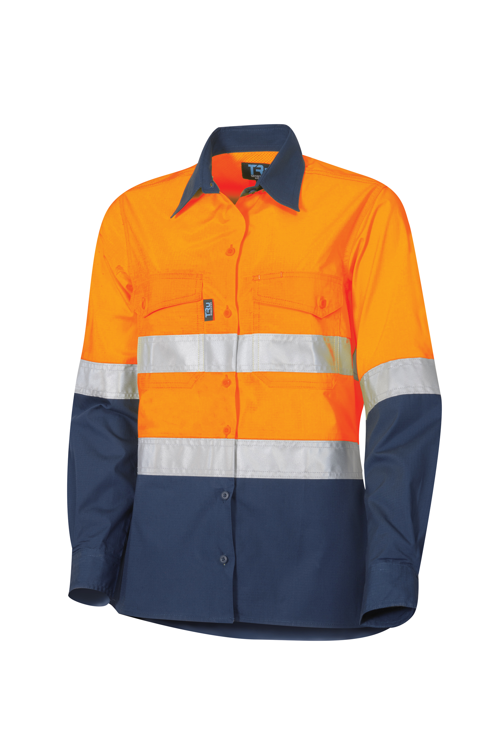 Ladies Ripstop Hi-Vis Cotton Vented Shirt with 3m Tape DSW2169T1-O/N-08